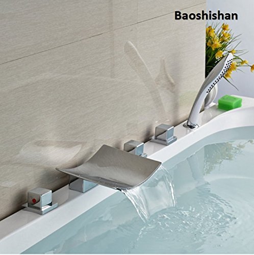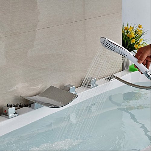 3-styles Deck Mount 5pcs Waterfall Spout Tub Faucet Chrome Finished Bathtub Mixer Taps Widespread 5 Holes (curve)