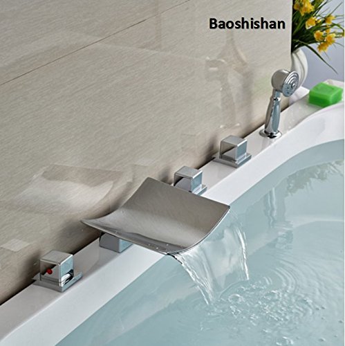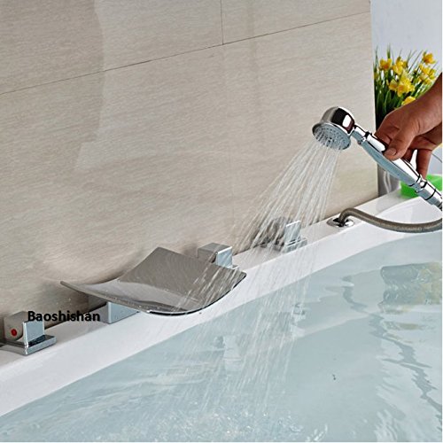 3-styles Deck Mount 5pcs Waterfall Spout Tub Faucet Chrome Finished Bathtub Mixer Taps Widespread 5 Holes (circular)