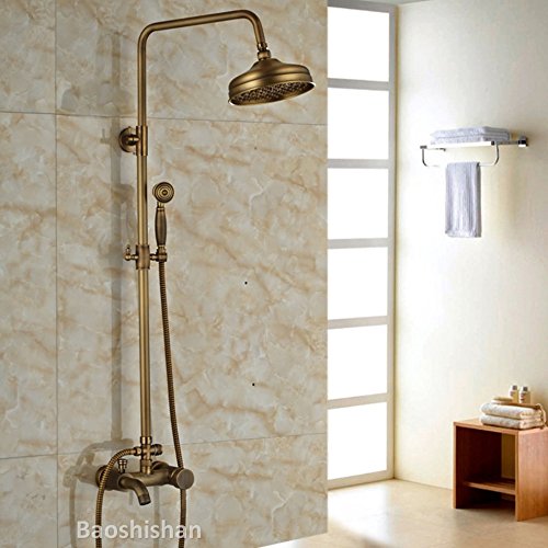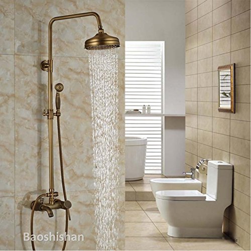 Brass Antique Wall Mounted Shower Mixer Faucet Set Bathroom Outdoor Bath Shower Mixer Taps (total golden 2)