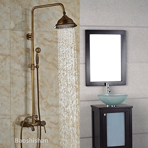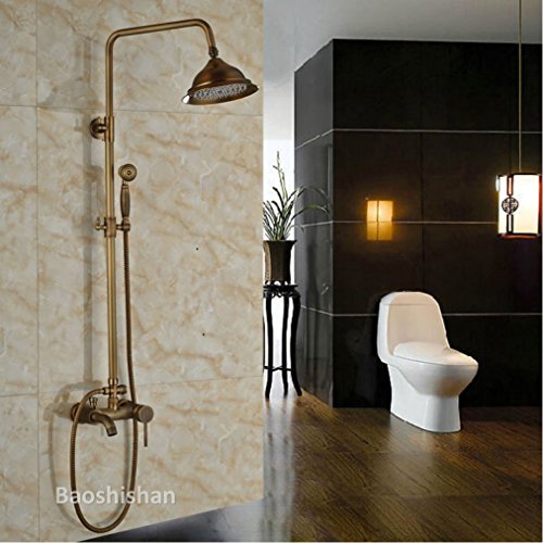 Brass Antique Wall Mounted Shower Mixer Faucet Set Bathroom Outdoor Bath Shower Mixer Taps (total golden 1)