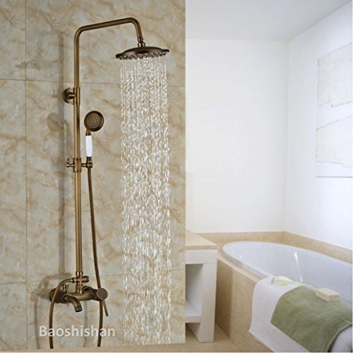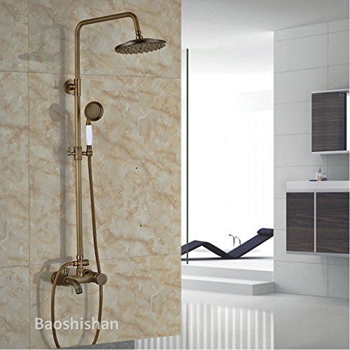 Brass Antique Wall Mounted Shower Mixer Faucet Set Bathroom Outdoor Bath Shower Mixer Taps (white handheld 3)