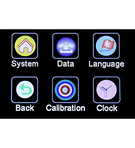 - Colorful touch screen displaying readings, statistics and calibration procedure status