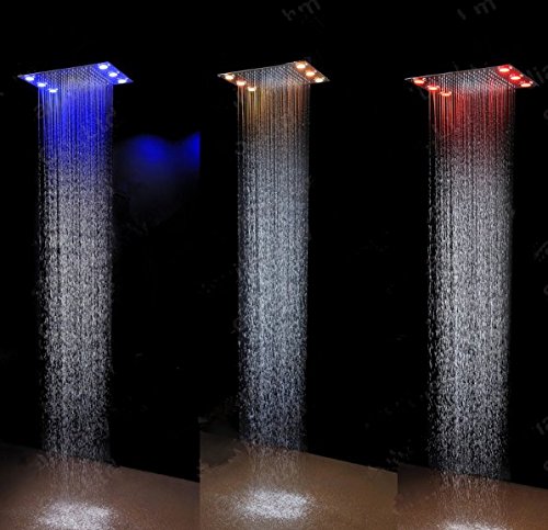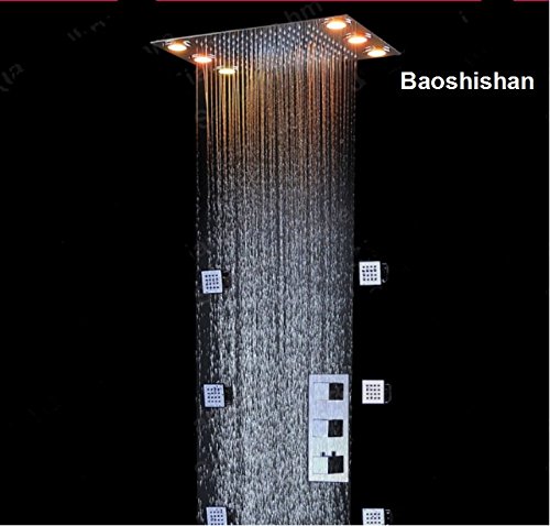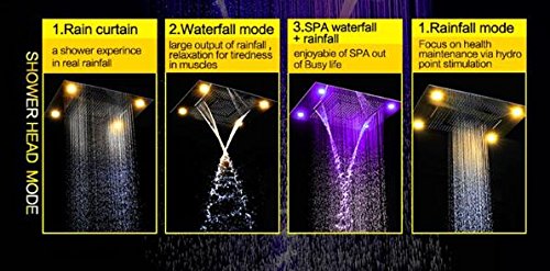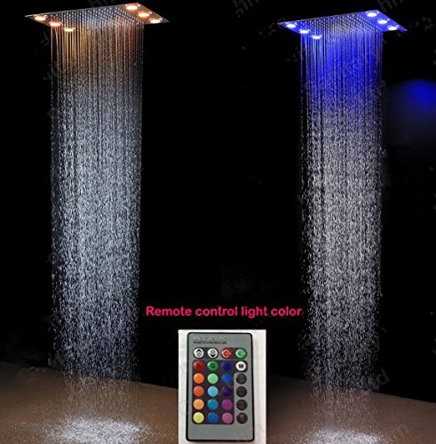 LED shower heads with brass shower mixer and 6pcs shower spray shower kit remote control color electric power 500*360mm rainfall