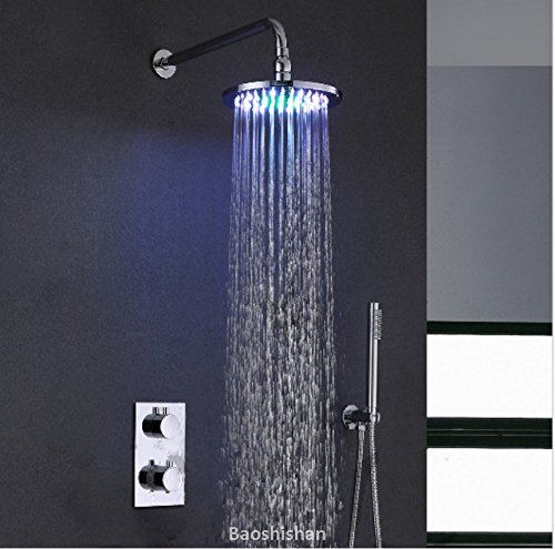 LED Round Shower Head with 7 Colors Solid Brass Chrome Thermostatic Concealed Shower Mixer Set