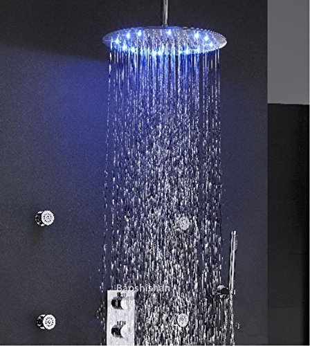 16 Inch LED Shower Head 3 Colors Thermostatic Sensitive Rainfall Round Shower Head And Massage Spray Jets