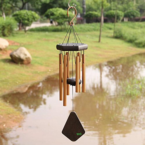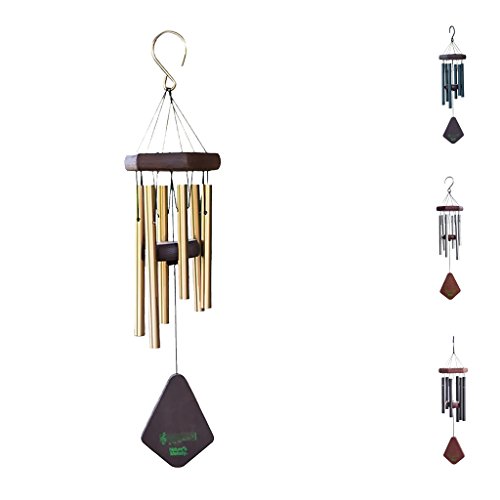 Baosity ウィンドチャーム 全4色 吊り装飾 ソリッドウッド アルミチューブ 風鈴 納涼 癒し音 - 金