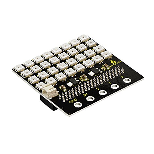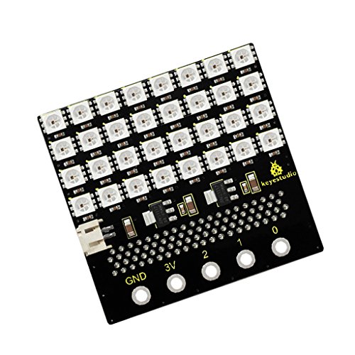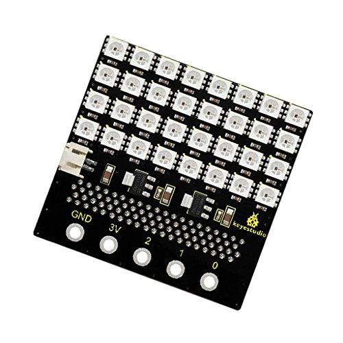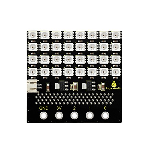 - KeyestudioマイクロビットSK6812 4X8 LEDドットマトリックスシールドには、32ビットのSK6812 LEDライトが付属し、マイクロビット制御ボードと完全に互換性があります。オンボードには2つの3.3Vレギュレータ・チップがあり、マイクロ・ビット制御ボード用の1つのパワーと、32個のSK6812 LEDライト用のその他のパワーがあります。