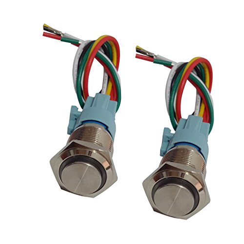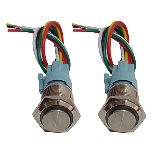 Baosity 2個セット 金属 プッシュボタン LED 押しスイッチ 防水 高温耐性 自動ロック ラッチ 16mm