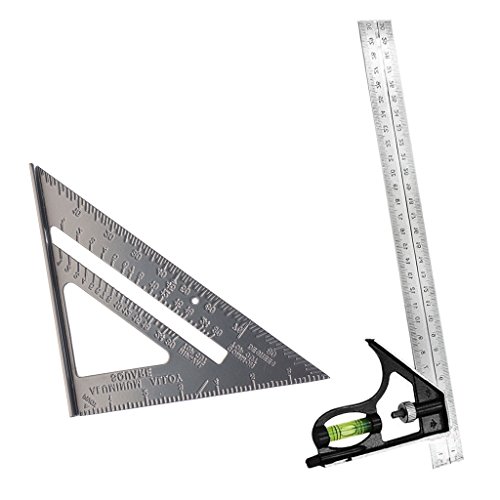 Baosity 2個セット コンビネーション スコヤ 三角スクエア 直角ルーラー 多用途 調整可能 アルミニウム
