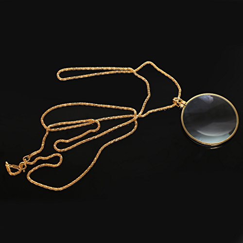 Baosity 2個入り モノクル ネックレス 金色のチェーン 虫眼鏡 6倍 拡大鏡 ペンダント ルーペ ゴールデン セット