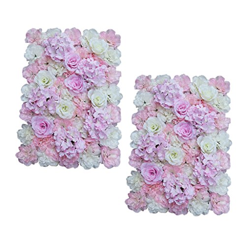 Baosity 2ピース 綺麗 人工花 壁 パネル ウェディング会場 背景装飾 造花 ピンク ホワイト