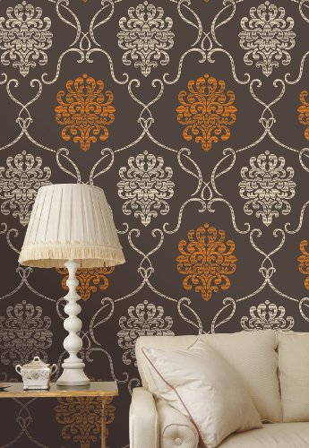 Decorline DL30445 Modern Damask Wallpaper, Brown by Decorline
