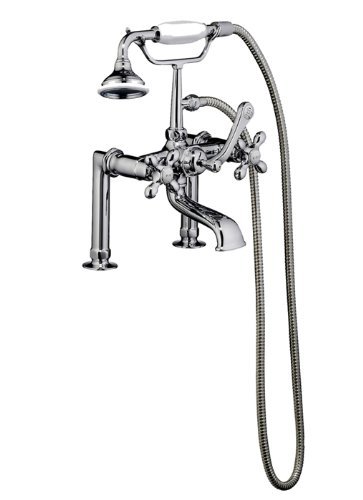 Barclay 4601-MC-SN Rim-Mounted Tub Faucet with Hand Shower, Cross Handles and 5-Inch Spout [並行輸入品]