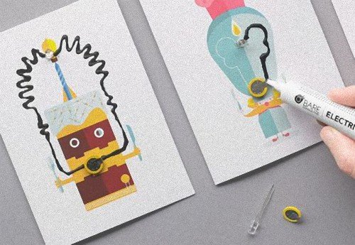- Bare Conductive製の導電ペイントは、紙や繊維から、プラスチックや従来の電子部品まで、多様な材質に使用できます