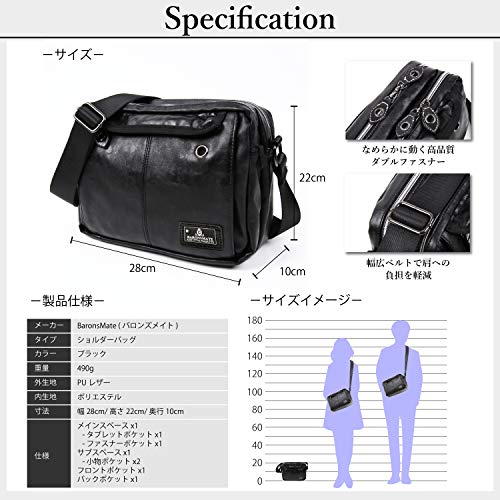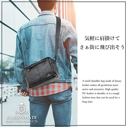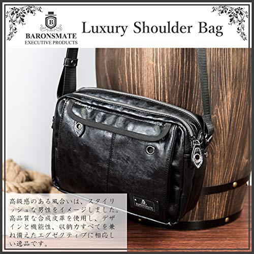 BaronsMate [公式] ショルダーバッグ メンズ 軽量 斜めがけ 防水 レザー 【改良版】 (ブラック) (ブラック)