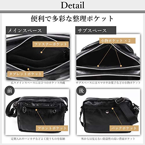 - ⭐️【洗練された落ち着いたデザイン】高級感漂う大人の品格を思わせる落ち着いたデザイン。オシャレでこだわり派の男性に好まれています。軽量で取り回しの良いコンパクトなショルダーバッグはちょっとしたお買い物や街歩き、旅行先でのお散歩やデートと様々な用途でお使いいただけます。普段から常に持ち歩くお財布やスマートフォン、タブレット、キーケース、カードケースなど、必要最小限の荷物を持ち運びたい。でも大きなカバンに入れるのはかさばるのが気になる。そんな方に選ばれています。