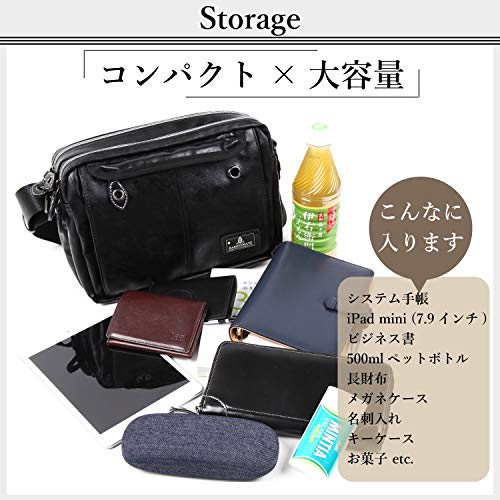 - ⭐️【小さくて軽量!だけど、大容量】コンパクトで丁度良いサイズのショルダーバッグとして多くのお客様にご好評いただいております。外形は小さく体にぴったりフィットするジャストサイズ。ですが、意外と大容量!男性が必ず持ち歩く長財布やキーケース、スマートフォンから、なんとiPad miniまですべて収納可能。厚みも十分あり、500mlのペットボトルも収納可能。従来のショルダーバッグの大きさが物足りなかった方にご満足いただける仕様です。