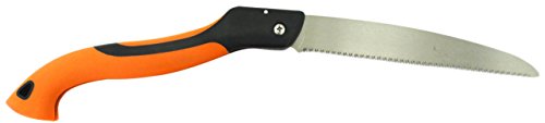 Cut through tree limbs in seconds with minimal effort. Almost 21" open, 12 TPI cuts of the PULL stroke and has unique design that also has teeth that cuts on the push stroke. Leaves a fine clean cut on limbs that arborists like. 12" closed design is easy to store and carry. Soft grip handle and blade lock for comfort and safety. SK- 5 steel blade is sharp and stays sharp.