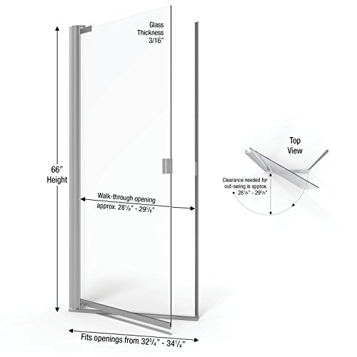 バスコクラシックsemi-framelessピボットスイングシャワードアFits 32 – 3 / 4 " – 34 – 1 / 4 " Opening withクリアガラス&つや消しニッケル仕上げ A0063-7XPBN 1