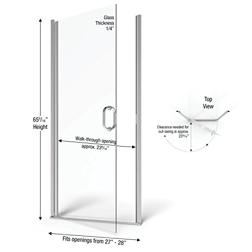 バスコinfinityフレームレススイングシャワードアFits 27 " – 28 " Opening with 1 / 4 "クリアガラス&つや消しニッケル仕上げ A0041-1XPSV 1