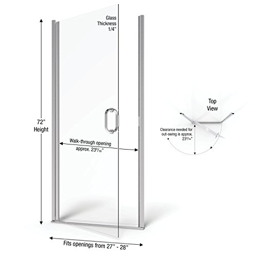 バスコinfinityフレームレススイングシャワードアFits 27 " – 28 " Opening with 1 / 4 "クリアガラス&つや消しニッケル仕上げ A0071-1CLSV 1