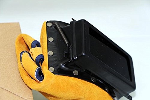 - はね上げ式で遮光ガラスと透明ガラスをカンタン切り替え可能な革製溶接マスクです。