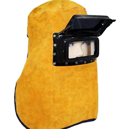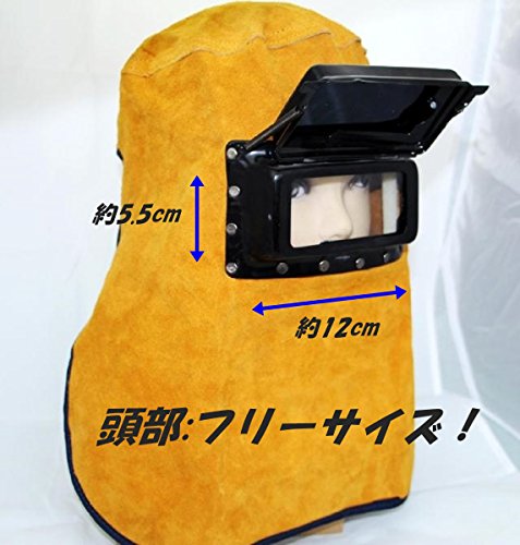 溶接 マスク 溶接面 火傷 防止 牛革 レザー 火傷 防止 保護具 はね上げ式 遮光 ゴーグル 頭巾 牛革製