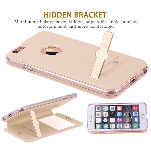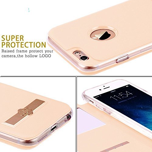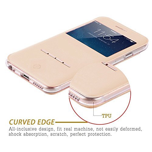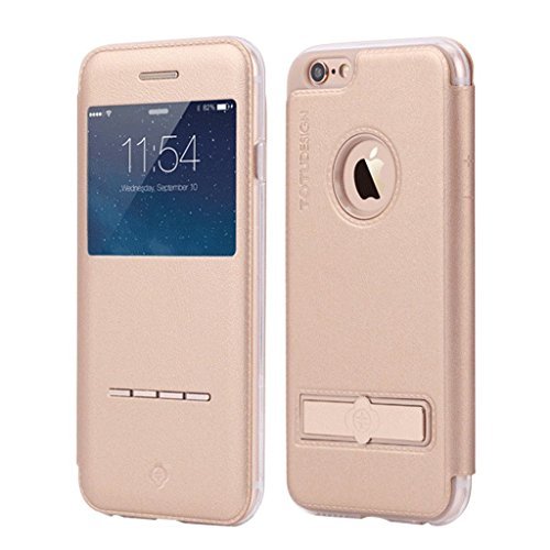 iPhone 6S Case,3C-Aone Metal [Kick-stand] [Touch Series] [View Window] Folio Flip (Tpu + Pu) Leather Case ,Metal Sensor Feature for Apple iPhone 6S 4.7inch (Gold) [並行輸入品]