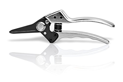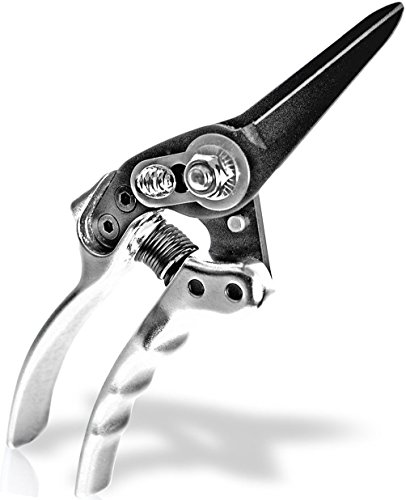 - SOLID & DEPENDABLE Sick and tired of cheap plastic pruning shears which bend, break, fall apart, and are so dull they don't even cut!? We know the frustration, which is why we built our premium, a heavy duty pruning scissors model, with a premium solid metal-on-metal construction and a sleek polished aluminum finish. Sharp blades and a sturdy all metal design, our pruners not only look great but are built to last or your money back.