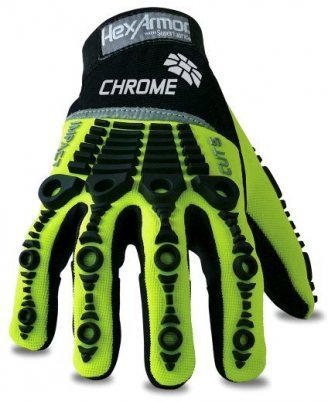 - HexArmor 4026-11 Chrome Series Cut 5 Impact Hi-Vis SuperFabric Cut Resistant Gloves with Synthetic Leather Palm and Back of Hand, Size 11, Black/Hi-Vis Green
