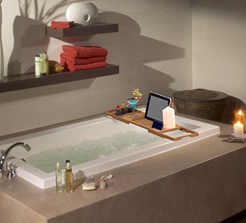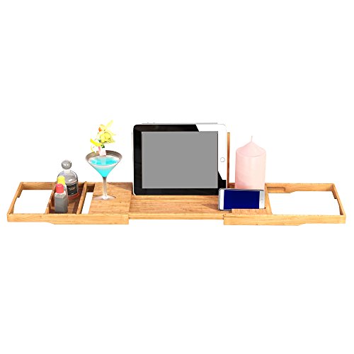 Bath夢竹Bathtub Caddyトレイwith Extending Sides – Enjoy a Relaxing Bath with aキャディto hold your books andワイン