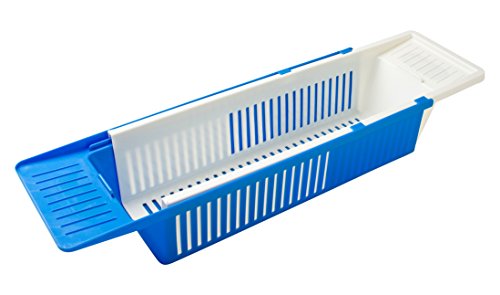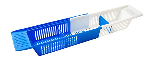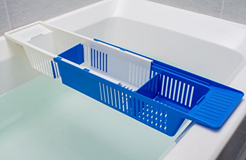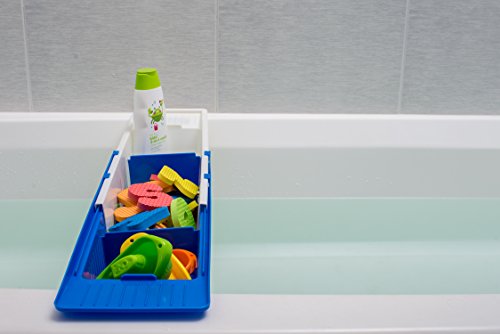 Bath Toy Organizer Tray - Best For Kids, Adults and Baby, Bathtub Storage Caddy - Holder For Shampoo, Body Wash, Washcloths & Loofas - Secure Blue Basket w/ Soap Dish and Handy Dividers