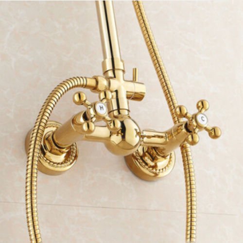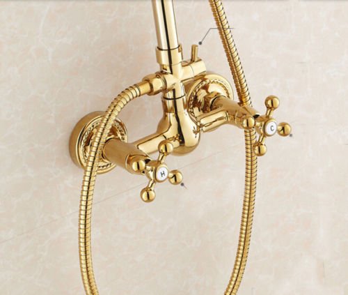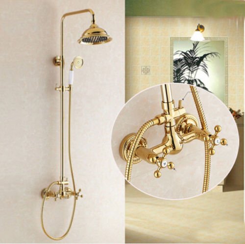 8 " Golden真鍮シャワーシャワー蛇口デュアルノブ蛇口セット降雨シャワーヘッド+ハンドシャワースプレー