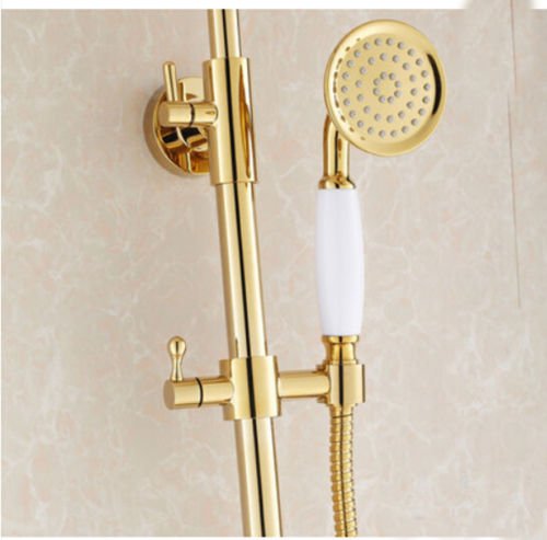 8 "ゴールデン真鍮シャワーシャワー蛇口デュアルノブ蛇口セット降雨シャワーヘッド+ハンドシャワースプレー# l387