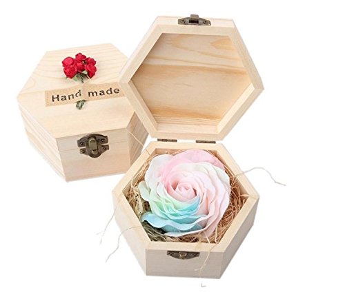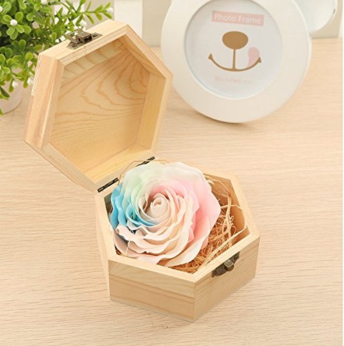 BatreetekカラフルなローズSOAP花六角形の木製のギフトボックス人工の花永遠の花誕生日母の日バレンタインデー教師の昇進のプロモーション