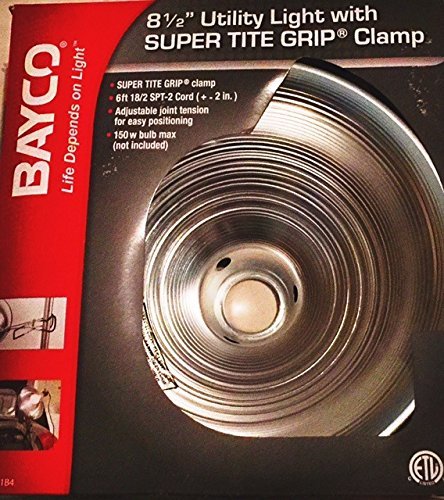 This multipurpose 8 1/2 inch clamp light gives you the light you need, wherever and whenever you need it. The grip-tite super clamp, covered in a scratch resistant vinyl sleeve, in combination with its adjustable ball joint, holds the light securely to virtually any surface and allows it to be pointed right where it's needed. The 8 1/2 inch clamp light will handle up to a 150 watt incandescent bulb (not included). it has a 6 foot 18/2 spt-2 cord.