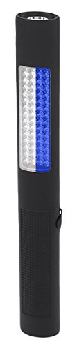 The NSR-2078 rechargeable safety light flashlight combines a full-size flashlight and a flood/flashing safety light in an all LED compact lightweight package. Two body-mounted push buttons control the lighting functions. The top button powers the tight-beam, long-throw flashlight in either momentary or constant-on mode and the bottom button controls the safety light. Pressing the bottom button Once turns on both sets of the blue/white safety lights at full power. Pressing the button a second time, causes the blue/white safety lights to alternately strobe between the two colors. Powered by a rechargeable li-ion battery.