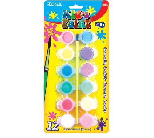 Bazic Products 3401-24 BAZIC 12 Color 6ml Kids Paint with Brush Case of 24