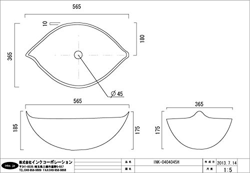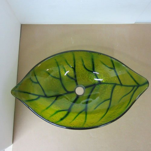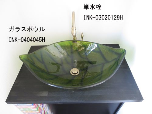 洗面ボウル 強化ガラス製 オンカウンタータイプ リーフ 幅56.5cm INK-0404045H