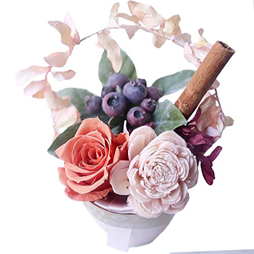 ●プリザーブドフラワーとは、生花に特殊な加工を施し、そのみずみずしさや柔らかさを保ち、長期間に渡って美しい状態を楽しむことができるお花。「プリザーブ」(preserve)は英語で「保存する」の意味。プリザーブドフラワーは自然の花を素材として作られているため、一つ一つの花の大きさや色・形が若干異なる場合がございますのでご了承ください。非常にデリケートな素材ですので、お取扱には充分にお気をつけください。保水の必要性がなく、水をかけると色落ちの原因になるので絶対に水をかけないでください。直射日光は花の色褪せや痛みの原因になるので湿気の多い場所には置かないでください。極端な乾燥や風が直接当たる場所に置くと花びらが乾燥してひび割れの原因となりますのでご注意ください。高温多湿のところでは植物から染料がにじみ出る場合があり、人体に無害ですが衣類等につかないようご注意ください。プリザーブド液は親油性のため、油性塗料や樹脂と直接触れると色移り・溶解・癒着の可能性がございますのでご注意ください。食用でなく、ワイヤー等を使用している場合もございますのでペットやお子様が触れたり、お口に入れないようにしてください