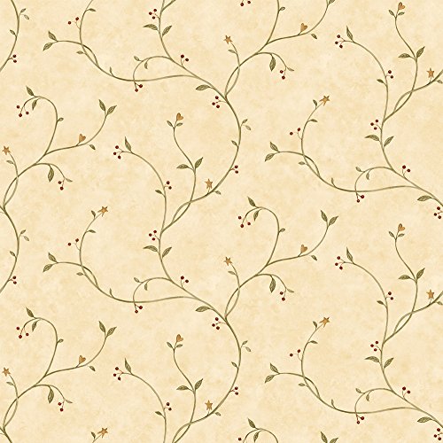 の美しいセージ色のつる、レッド・ベリー、黄色のハートと星を本当にこの、中性の質感の壁紙、振動オフ。機能が導入されています。パターン不織紙で作成された10.25インチドロップ一致に対して処理を繰り返し洗えて、剥がせるpre-pastedお客様の寸法:長さ: 33フィート幅:20.5インチ(最も遠い点から左から最も遠い点右に測定器具) 56.4平方フィートをカバー