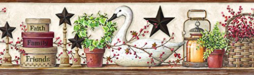 Chesapeake PUR44633B Rue White Swan Star Collage Wallpaper Border by Chesapeake