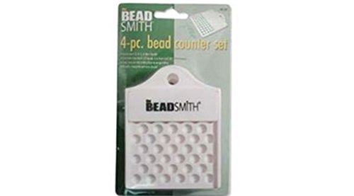 Counting beads is now faster than ever. Our set includes four trays for measuring up to one hundred 3 & 4mm beads and up to fifty 6 & 8mm beads. Just slide the plastic rectangle to set the quantity. It is made of hard plastic, and has a convenient hang tab for easy display or storage. Each 4-piece set includes one bead counter for each size. Counters are 3 x 4 inches.