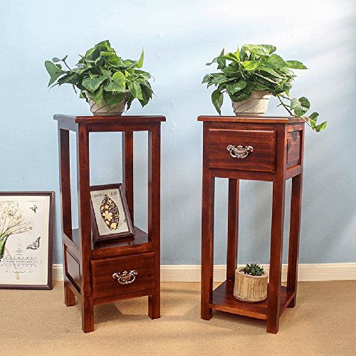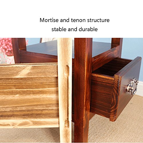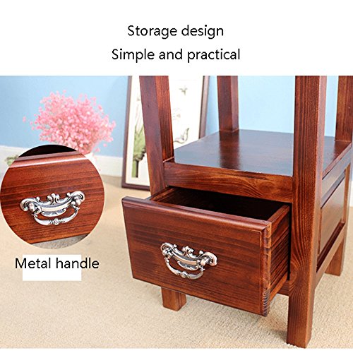 ソリッドウッドフラワーシェルフ装飾ディスプレイスタンド室内リビングルームフラワーシェルフバルコニー多層引き出しフラワーシェルフビンテージフラワースタンド (三 : Drawer on top)