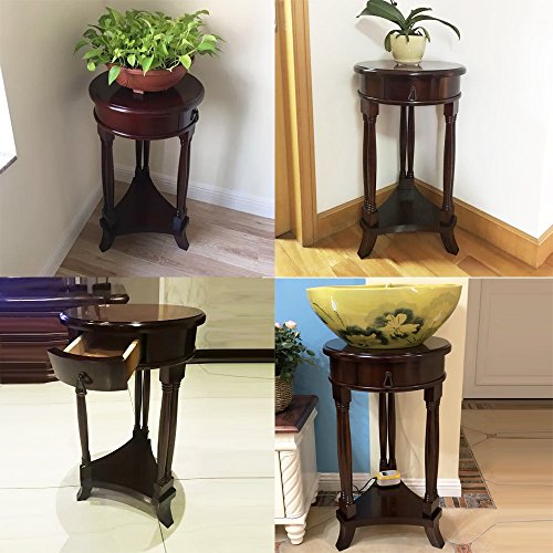 ソリッドウッドフラワーラックリビングルームコーヒーテーブルサイドテーブルラウンド引き出しテーブルインテリアテーブル2のレイヤーリビングルームストレージラックベッドルームベッドサイドテーブルデコレーションテーブルディスプレイラックディスプレイラック