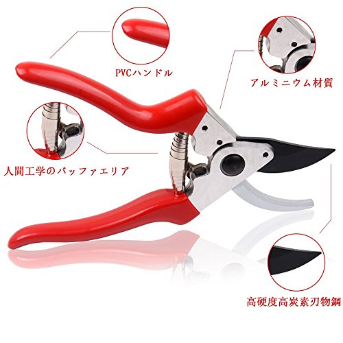 - 【人間工学】ハンドルと刃は人間工学に基づいてデザインされたので、使用者が切断対象に与える切断力を増加し、手と腕にストレスに掛からない様になております。また、ハンドルが滑り止めのPVC材質を採用するのでご使用際に滑べにくく刈込む作業が楽になります。
