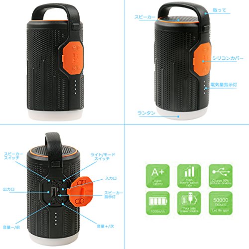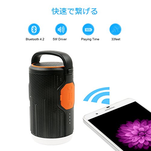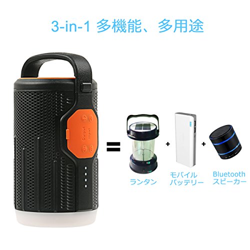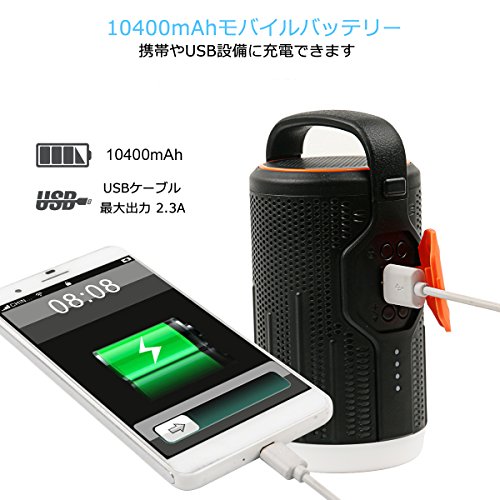 - 【モバイルバッテリー機能】:10400mAhリチウムイオン電池が内蔵しており、長時間連続再生ができます。バッテリー切れの心配せずに音楽を楽しめます。5V/2.3Aの出力口付きなのでモバイルバッテリーとしても使用可能のbluetoothスピーカーです。