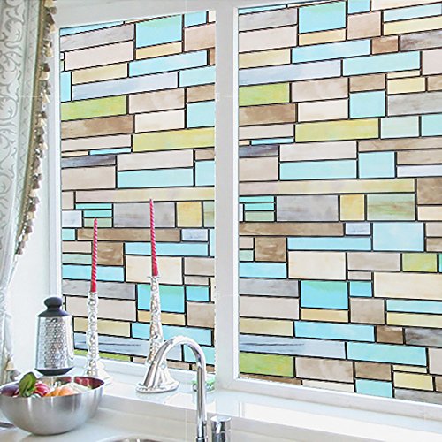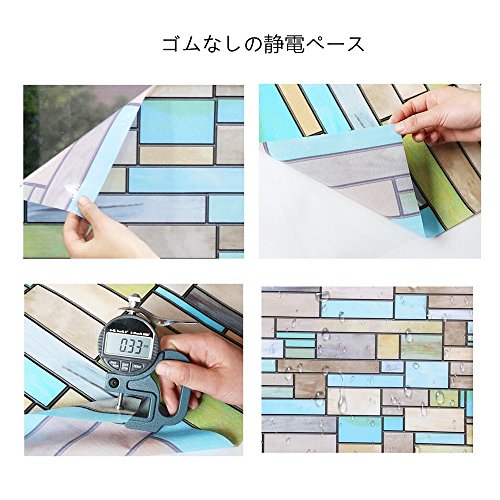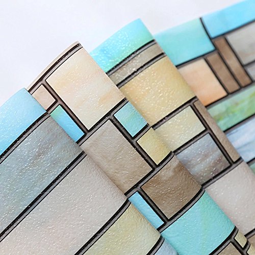- 【おしゃれ・ステンドグラス・防犯】現代間満々の煉瓦模様で、青っぽいのフィルムは貼り付け後爽やかい、光の照射より色が薄くなり、幸せなリビングを感じます。