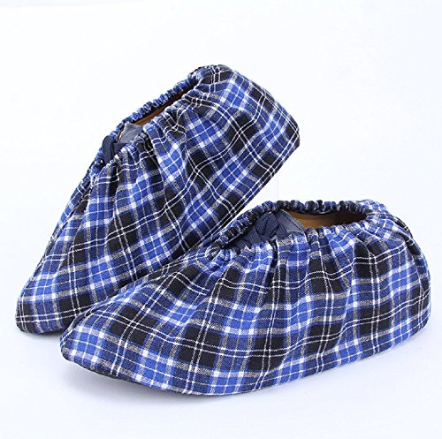 2ペアルームホームシューカバーカシミアコットン滑り止めノンスリップ反復洗浄厚い耐摩耗性 (ブルー格子縞)