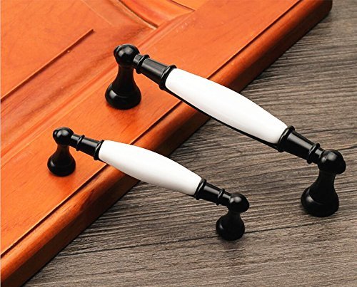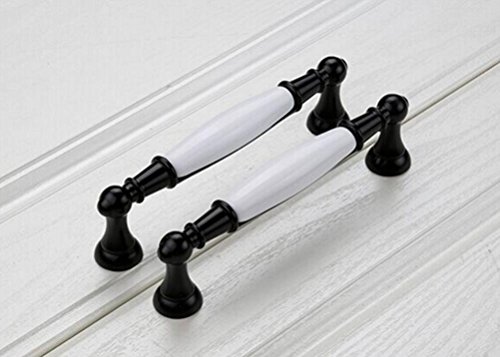 2個白黒キャビネットはドアハンドルを引っ張ってキャビネットハードウェア亜鉛合金とセラミックの取り付けネジ (128mm(5インチ))